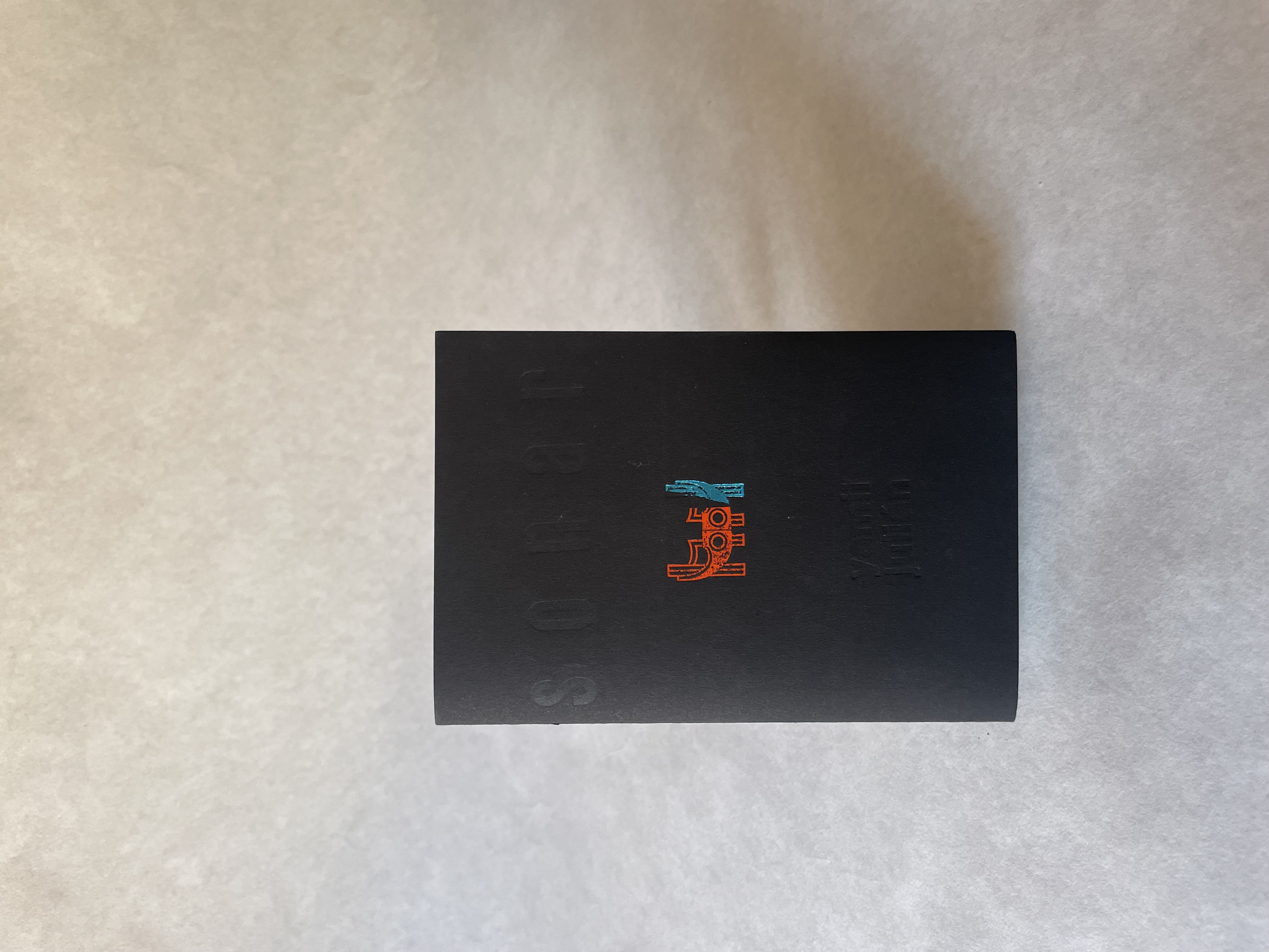 ︎ Leer Sonar, de Yamil Julián Sonido. Quién está seguro de un sonido: decimos que los coyotes aúllan, metafóricamente gimen, a veces chillan. Son llamados entre manadas, manadas y coyotes precisos, entre hembras y machos. Pueden ser notas largas que suben y luego caen, aullidos, o una serie de notas cortas, chillidos. Se escuchan más en primavera, cuando los cachorros salen de sus familias para establecer territorios nuevos. Pero el aullido es engañoso: debido a la característica del sonido a la distancia, parece que el coyote está en un lugar, cuando en realidad está en otra parte. La tormenta parece que ocurre en un lugar, el oído, pero realmente está en otro, la pantalla, la vista. El sonido también es engañoso en otro aspecto: decimos que el coyote gime, pero es la interpretación humana del vibrato que producen los agudos en el cuerpo lo que hace que atormentemos a un animal no atormentado. En el Recital de poesía los sonidos adquieren un cuerpo que los procesa e interpreta. El eco del sonido repercute sobre el sustrato físicoquímico de una criatura que no solo escucha a una persona enunciando con propósito, sino que capta, procesa y responde de manera simultánea a todo el ambiente de sonidos y ruidos. Este es un slimbook sonoro, pero no hay en él audio alguno, no hay tampoco ritmo, cacofonías, acentuaciones, metros, galopes y encabalgados. SONAR es una experiencia concreta del sonido, visual, táctil y semántica.